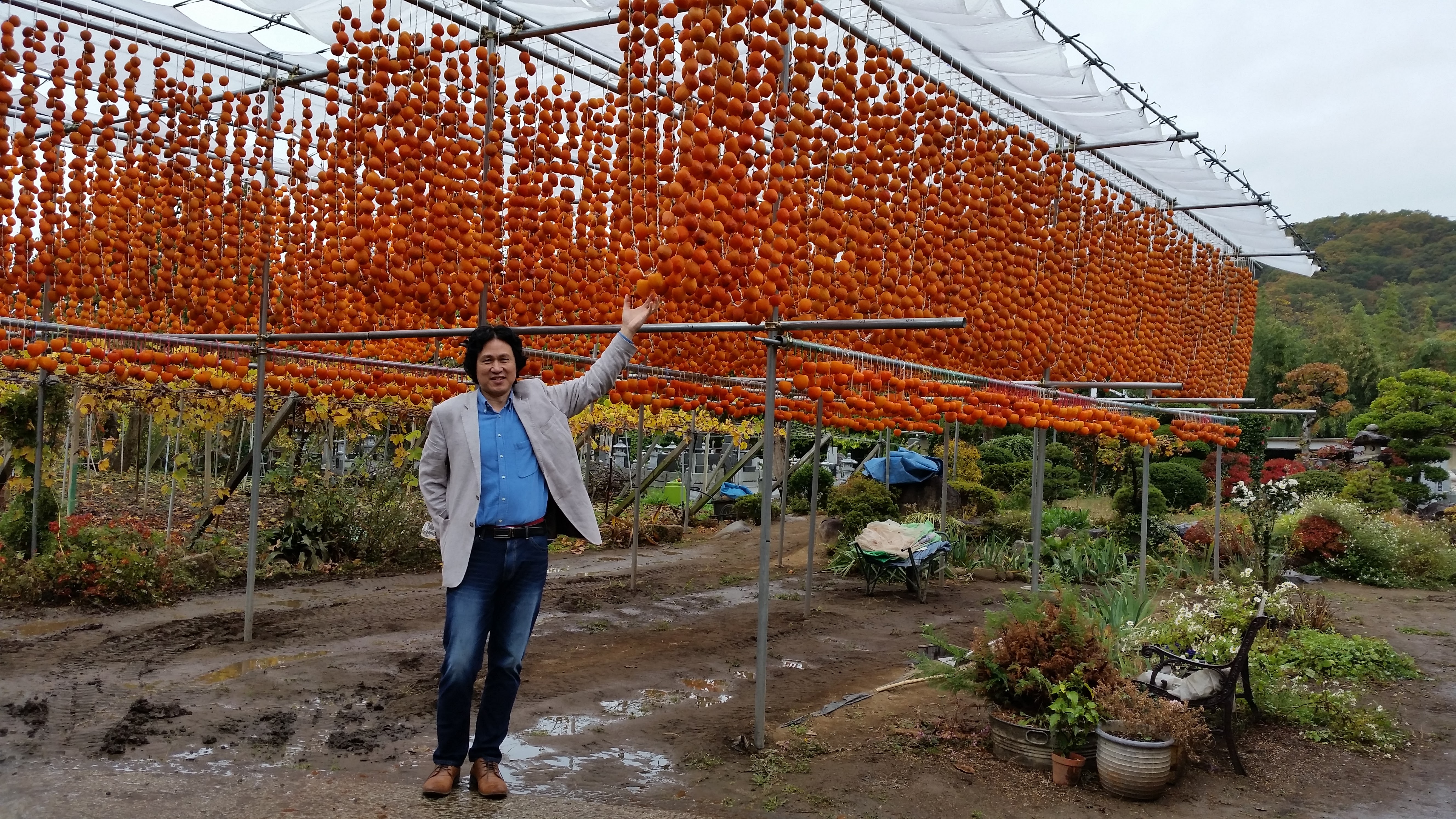 またこの100選コンサートを全面的に協力していただいた森林文化協会の寺門様が取材のため、ご一緒にバスに乗りました。全員女性ファンの中に貴重な男性でした。出発時間が早かったため、途中下車で山梨市内の恵林寺を見学しました。もう11月中旬ですからブドウの収穫季節が終わりましたので、途中のブドウ畑に何も残っていなかったのですが、柿が沢山ありました。恵林寺の入口の所に1人のおばあさんが熟した柿を売っていて、とても美味しそうに見えるので、私が100円で買って、すごい大きな柿を食べました。すごく甘かったので、お土産に5個買いました。恵林寺に入ると皆さんびっくりしました。その建物や紅葉、そして寺内の色々の植物が、日本の四季をはっきり表現しています。いつかこの寺の中でもコンサートができたら良いなと思いました。