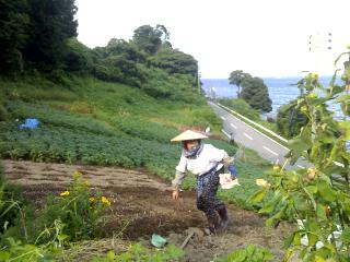 29日。新潟港からフェリーおけさ号で両津港へ。港の食堂で昼食。片野尾、月布施、野浦に食料品が買える店があるか尋ねると、そこには何もないので、ここ両津の商店街で買っていったほうがよいと言われ、酒屋と食料品店で買い物をしてからスタート。両津から海岸沿を塩風を浴びながら片野尾まで快走。片野尾では農作業中のご夫婦に話かけてみる。後藤さんといい、米、野菜、椎茸の栽培、ワカメの養殖、サザエ採りをおこなっているという。例によってどこから来たのと聞かれ、東京の立川市からというと、立川知ってるョ、息子が昭島市宮沢町に住んでいる。息子のところに行ったとき、立川駅からタクシーに乗ったという。昭島市は立川市の隣の市。このあたりには棚田があるというが見当たらない、どこにあるのと尋ねると、それでは案内するといって軽トラックで案内してくれる。棚田は海の背後の山の上にある。こんな険しい山の上によく作ったと思うような場所だ。高台から見た海に迫る棚田の景観が素晴らしい。続いて月布施、野浦に行き、来た道を戻ってくると、月布施でにほんの里100選ガイドブックに載っている村上さんに出会う。以前東京から来た人が写真を撮っていったという。話の様子では多分にほんの里100選の関係者のようだ。貴方はどんな役割の人と尋ねられるたので、にほんの里100選に選ばれた所を自転車で走って、リポートを送っていますと答えると、少し休んでゆけといってスイカを出してくれる。さらに帰りぎわに、今畑で採ってきたというトマト、きゅうり、茄子を持たせてくれる。野菜をいただいたりしたことよりも、その気持がとても嬉しい。姫崎キャンプ場に着いて管理人に連絡すると、すぐ来てくれ、今日の泊は一人だけ、テントではなく休憩所に泊まればと言われ、休憩所に泊まらせていただく。休憩所には洗面所、トイレがついている。今日はいろいろな人に出会い、そして暖かい心づかいに、佐渡を訪ねて良かったと思う一日となった。走行距離36、28km。