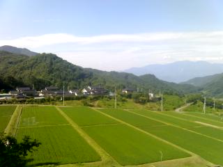 6月27日 青木湖の日の出が素晴らしい。ここでキャンプをしてよかった。青木湖からは他のルートもあるが、あえて学生時代にスキーに来たことのある佐野坂を上って小川村へ。小川村では村役場付近から県道36号を1時間ほどかけてアルプス展望広場へ。アルプス連峰の絶景地だ。携帯のカメラでは望遠レンズがないので、素晴らしいアルプスも遠景しかお見せできないのが残念だ。この村は「癒しの郷」づくりがうたい文句だと聞いているが、今日は土曜日で村役場は休み、残念ながらこのことは聞くことができなかった。村内を走ってみる。こんなところでと思うような山の急斜面で豆の栽培が行われている。また栗の圃場もある。残念ながらこれらのことについての話を聞くことができなかった。小川村から次の目的地山梨県北杜市までは今日中には着かないので、県道31号で大町市へ戻って松本市を目指す。ところが県道31号は道の駅ぽかぽかランド美麻から大町市までの16kmがずっと上りで、この部分だけで1時間30分もかかる。ストレスのたまる道だ。大町市からは国道147号で松本市へ。途中の穂高までは時速27〜28kmで安曇野を快走。普通にペダルを踏んでいるのにだ。これで美麻からの上りのストレスが解消。大町市から松本市まで1時間45分で到着。松本城近くに宿をとる。走行距離98.75km。
