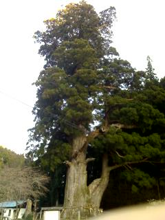 朝起きて宿の窓から外を見ると南アルプスの聖岳が見える。民宿で屋敷の集落へ行ってみると聖岳とこの本村の展望がいいよと言われ行ってみる。まだ雪が残る聖岳と急斜面にへばりつくように昨日泊まった民宿のある本村の展望が素晴らしい。国道152号を快調に走り天竜村へ。快調に走れたのはここまで。またしても根羽村手前10キロまで延々と上り。根羽村役場の振興課長から100選の話をきく。この村は人口1200人、杉と桧の森林面積が村の面積の90パーセントを占めるという。みどころは月瀬の大杉、ここはぜひ行ってくださいと言われる。キャンプ場がまだオープンしていないので宿の紹介をお願いする。森林組合の職員の家が農家民宿をやっている。電話をいれてくれ泊まれることに。ただ奥さんが用事で夜出かけるので夕食はできない。民宿に着くとご主人が待っていて、月瀬の大杉とスーパーにクルマで案内してくれる。クルマで走っているとどこも森林。森林のなかに村がある感じだ。宿で夕食を食べようとすると居間のほうで一緒に食べようと言われ、サービスでビール、イノシシの肉、野沢菜を出してくれる。役場でいい民宿を紹介してくれた。走行距離73.37km。写真は月瀬の大杉。