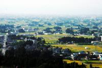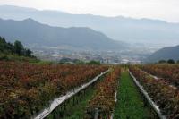 牧丘町の高原は一面のブドウ畑。住民は1次産業主体に暮らす。八幡地区にはさらにモモなどの果樹やコメ、古い切妻型の民家も。