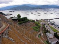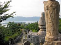 白滝山と五百羅漢の石仏群がシンボル。多くの島々を望む景観は歌人を魅了。山すそを除虫菊が白く埋めた「花の島」復活を図る。