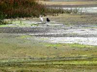 渡り鳥の餌となる貝など底生動物が豊富。周辺にはハマニンニクなど塩生植物が群生、干潟本来の景観を残す。保全活動も続く。