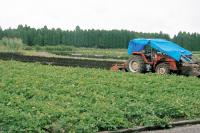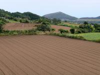 草地が広がる鬼岳東麓(ろく)の畑作地帯。現在も葉タバコ栽培が続く。防風のため畑を囲う石垣と生け垣は、生き物の暮らしの場にも。