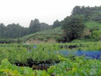 集落と周辺の里山に、手入れの行き届いた梨(なし)園が広がる。土蔵や生け垣などを備える落ち着いた家並みが山沿いに続く。