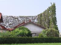 洪水と風を防ぐためのクロマツの高生け垣「築地(ついじ)松」はこの地独特。定期的な枝切りで機能美を保ち、保全機運も高まっている。